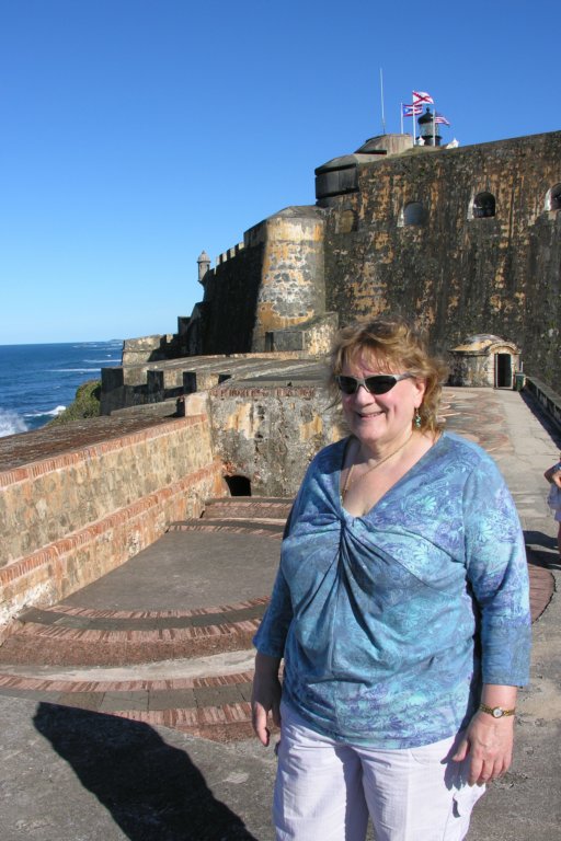 Day 3 San Juan - Jack by the fort's sentry box - 16th century Fort San Felipe del Morro