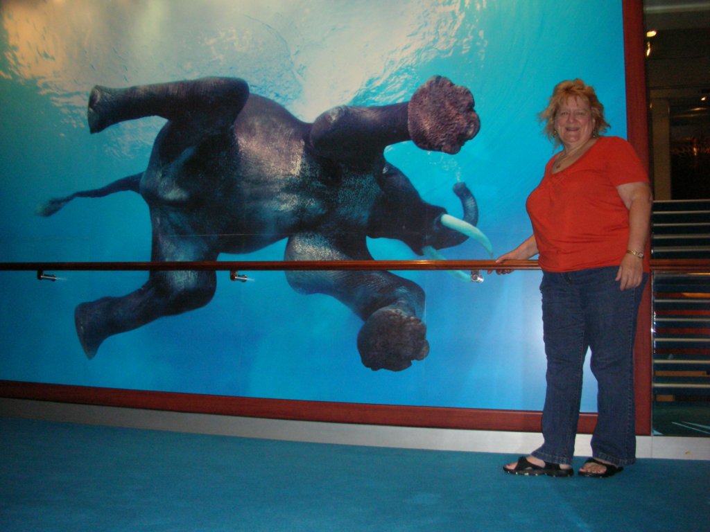 Day 2 Great Stirrup Cay, Bahamas - Jane in our cabin on deck 11