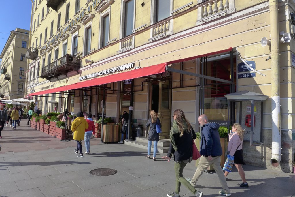 Coffeeshop Company across the street from Kazan Cathedral on Nevsky Prospekt