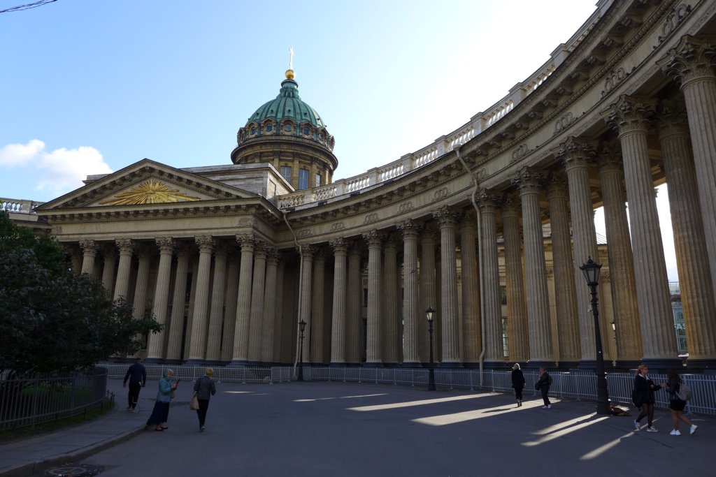 Kazan Cathedral, the cathedral was modeled after Saint Peter’s in Rome and is one of the largest cathedrals in Russia, the dome being 80 meters high.