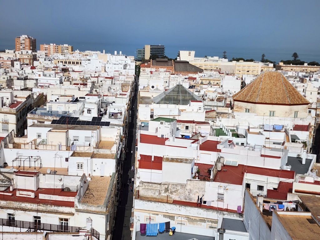 Views from the top of the Tavira Tower looking at the Cádiz Cathedral