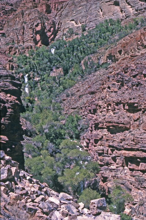 Day 7 - August 29, 1977 - Hiking to the Thunder River just a few hundred feet from Tapeats Creek - River Marker 133.7 - ARTA Grand Canyon Raft Trip.