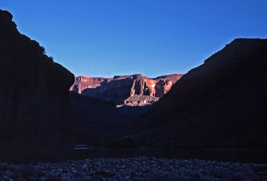 Day 7 - August 29, 1977 - This is where Tapeats Creek flows into the Colorado River - Helicopter Medical rescue - River Marker 133.7 - ARTA Grand Canyon Raft Trip.