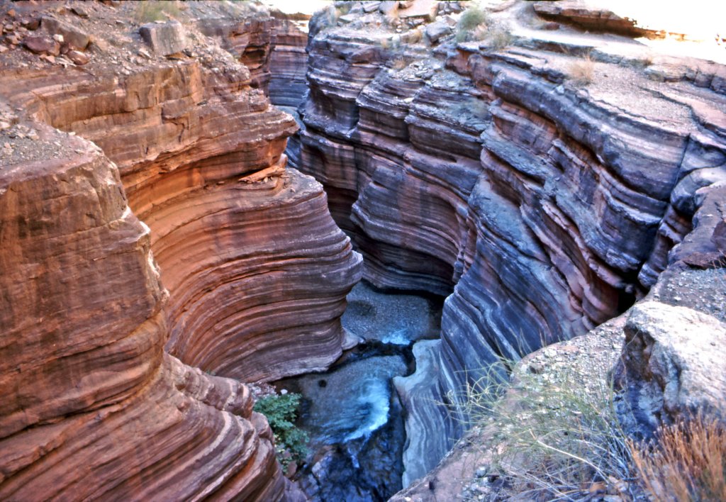 Day 8 - August 30, 1977 - Hiking along Deer Creek Gorge - River Marker 136.2 - ARTA Grand Canyon Raft Trip.