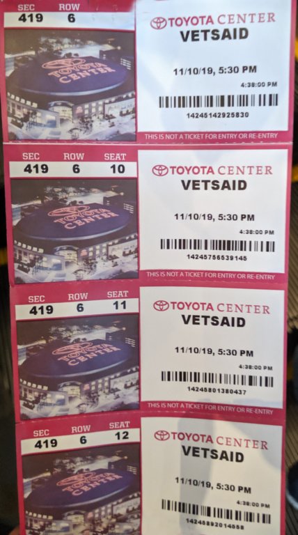 Vetsaid at the Houstan Texas Toyota Center, Nov 10 2019 - Jane, Dick, Monica, and Jack