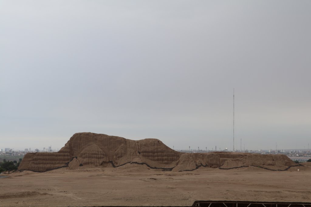 Temple of the Sun (Huaca del Sol) and Temple of the Moon (Huaca de la Luna) built from adobe (mud)