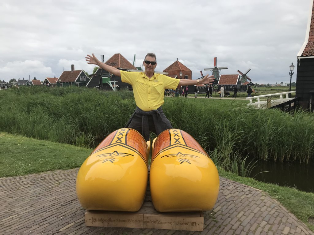 From Amsterdam, day trip to Zaanse Schans in the Dutch town of Zaandam. 18th/19th-century village recreated by relocating historic windmills and green wooden houses.