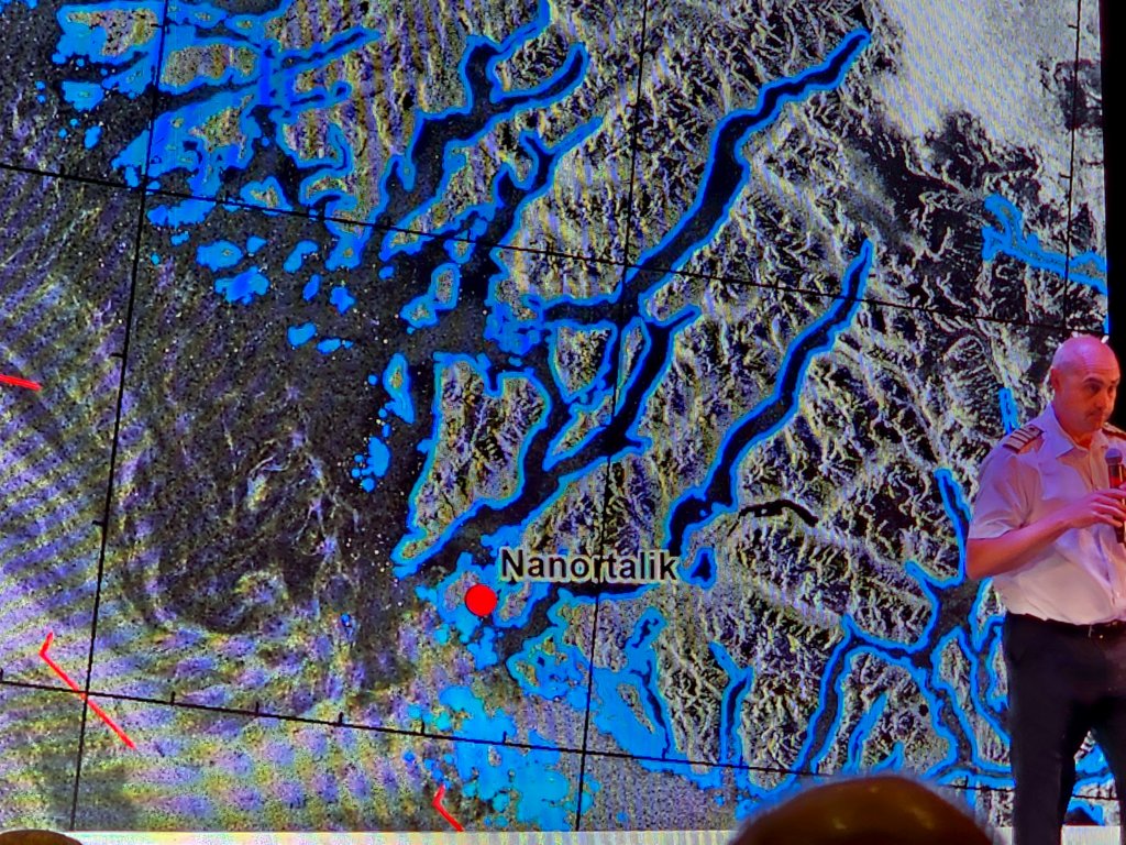 Captain Paul Adams with ice pilots discuss navigating around Greenland to our three ports